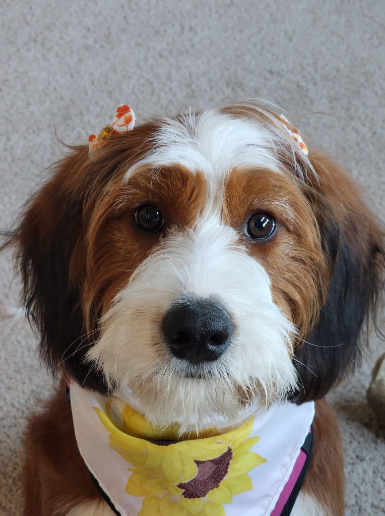I get to care for the puppies for the 1st 8 weeks of their journey. After that, I hand them off to wonderful, caring families whom I trust will give their puppy all the love and affection they need. On occasion, I receive updated photos of the puppies as they’re growing. On this page I will be sharing the updated photos I receive for you to enjoy as well.